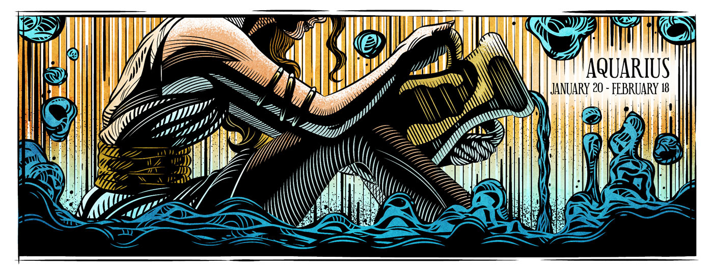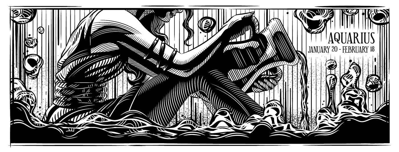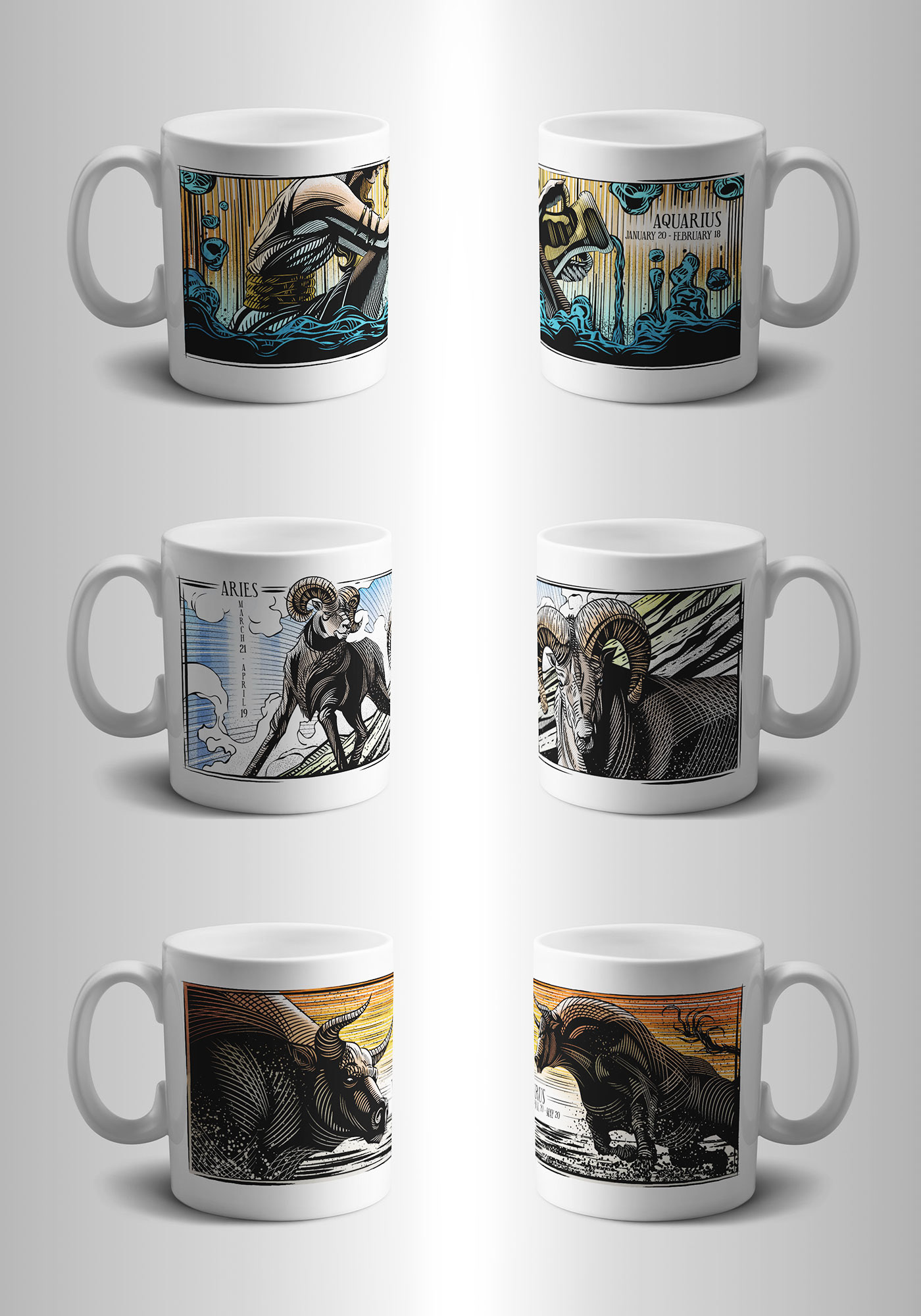Astrological sign artworks that were designed to be printed on mugs either in line art or full color.