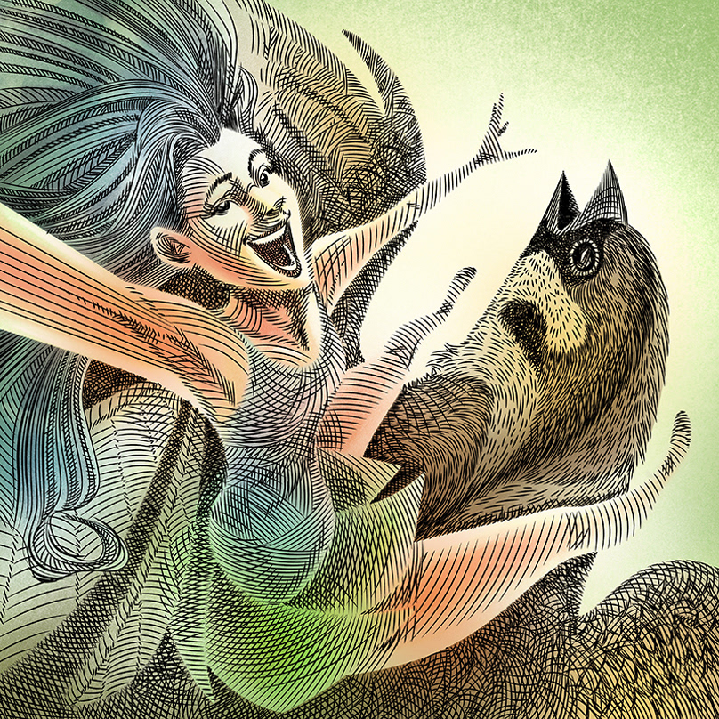 A fairy taking a selfie on-board a maya bird.