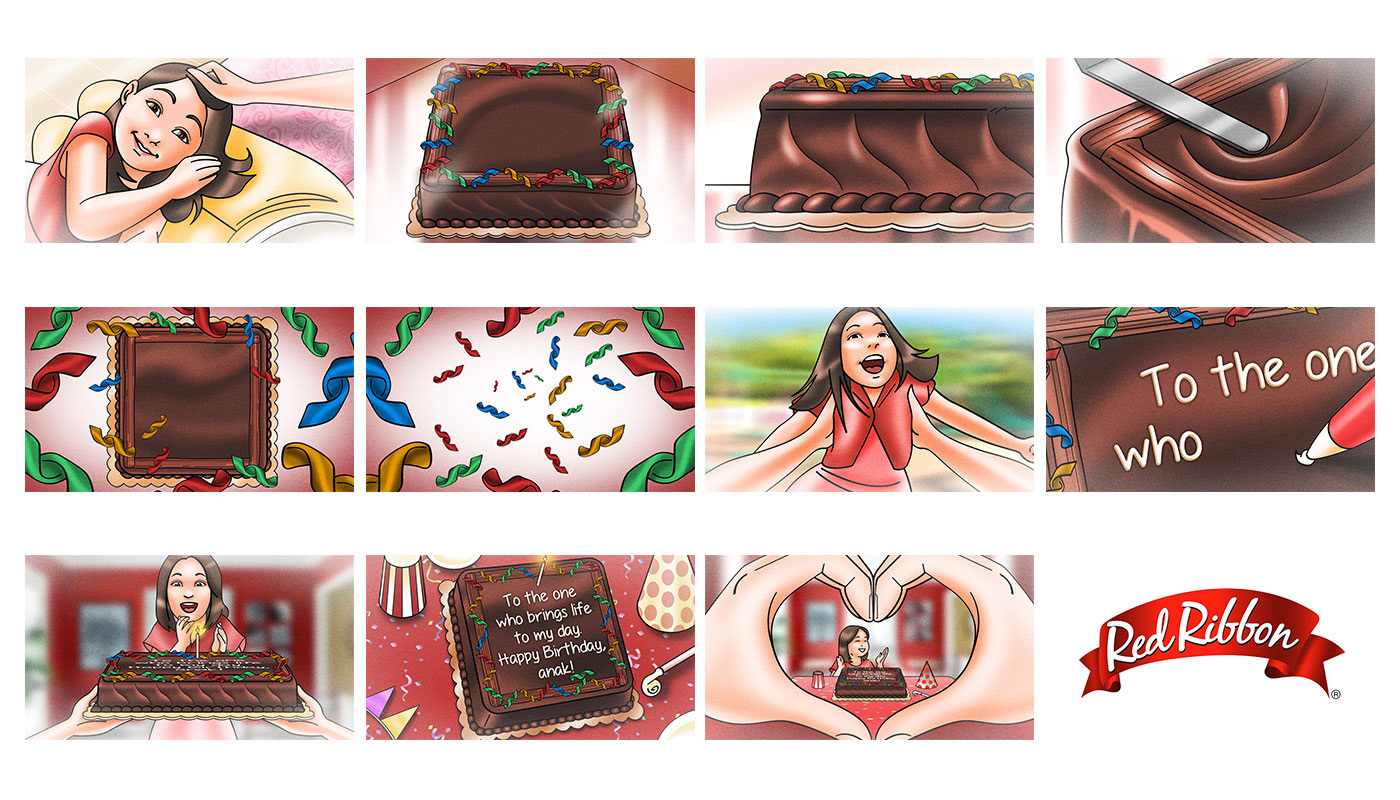 TVC Storyboard for Red Ribbon Bakeshop's dedication chocolate cake.