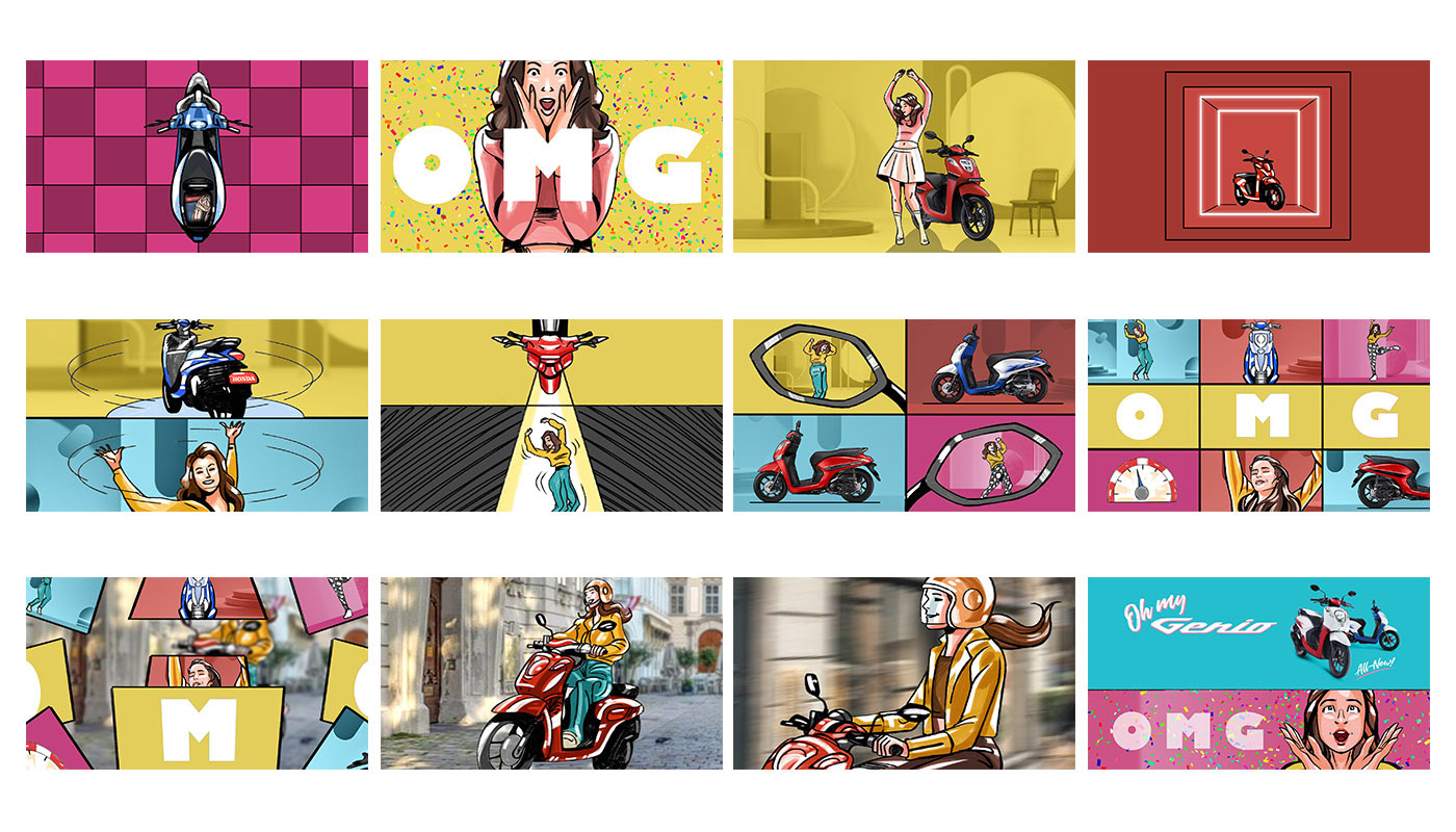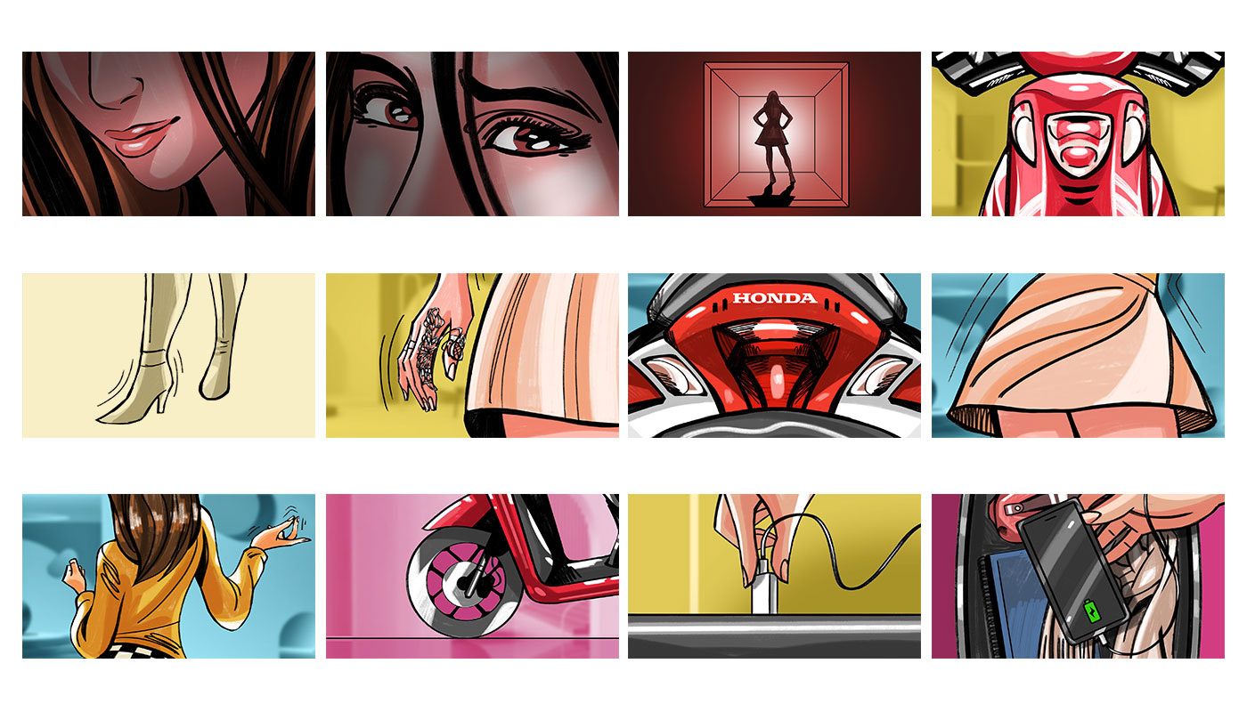 Director's storyboard for Honda's new Genio Scooter TVC starring Yassi Pressman. Director: Gian Mawo, Production House: Unitel Straight Shooters.