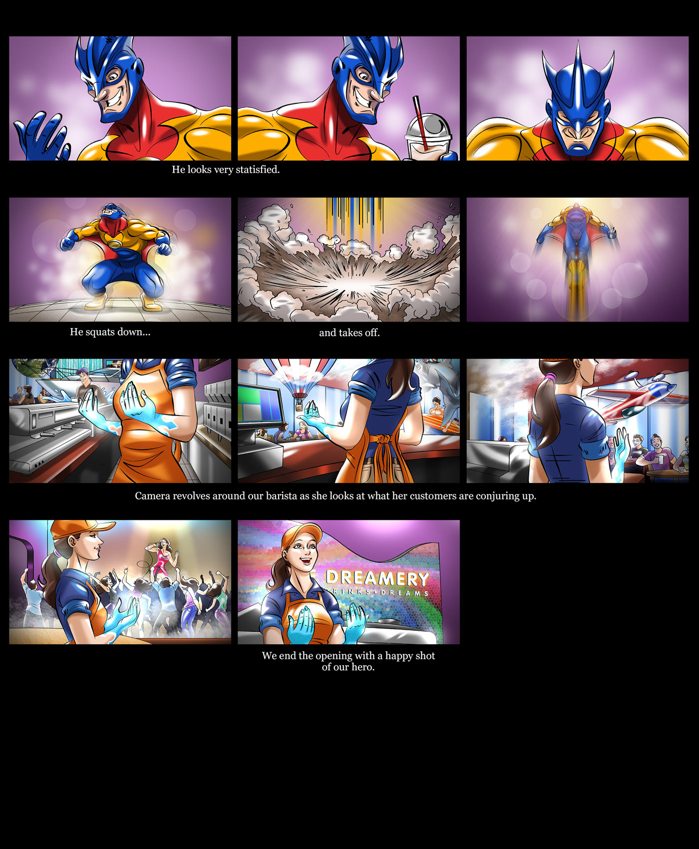 Barista short film opening sequence pitch storyboard